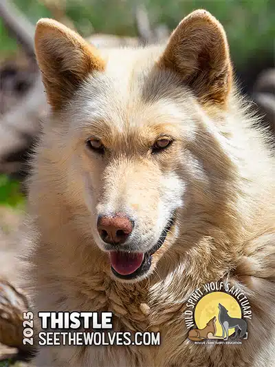 And so it was that 6 months later, a space had finally opened up for this stunning little girl, who was transported all the way from Alaska to New Mexico by plane, allowing her owner to escort her all the way to the sanctuary, where she helped get her settled into her new home. Because we already have a rescue named Honey, our new pack member was renamed Thistle (which she and the entire team are all working to get used to).