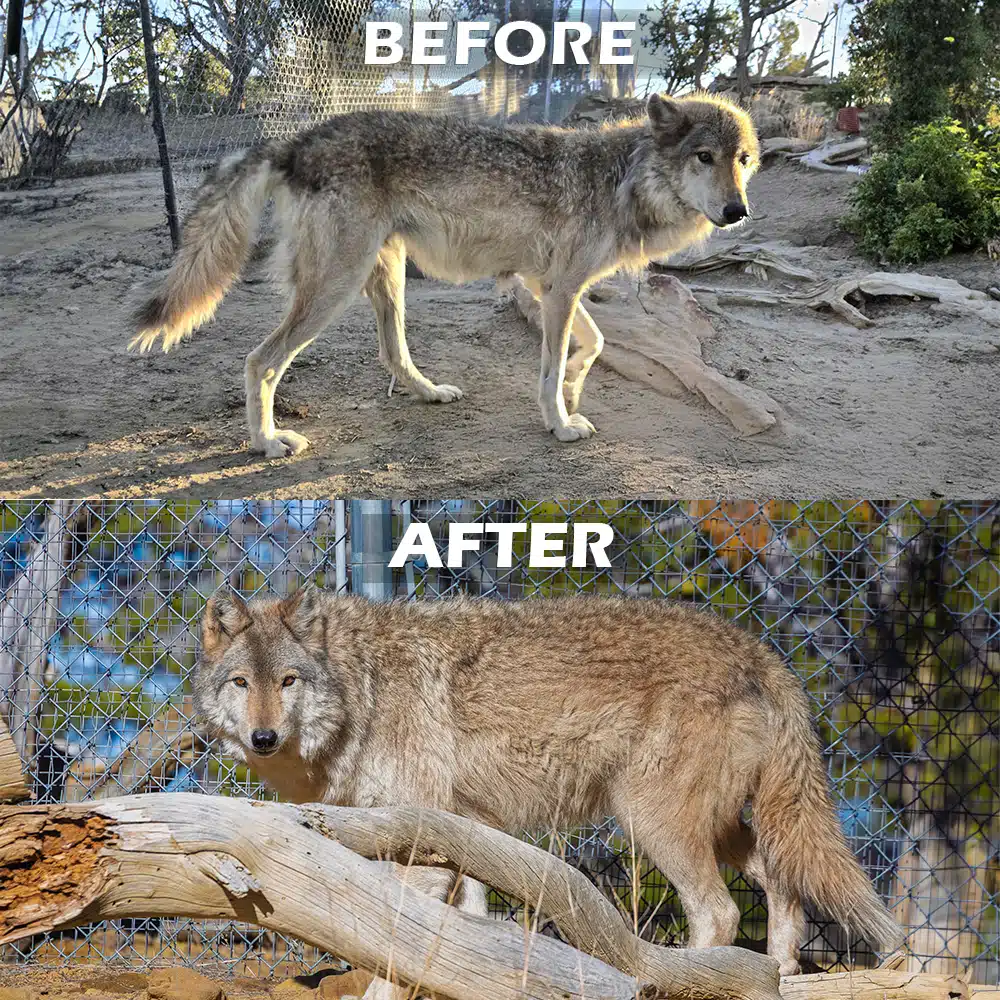 This can be particularly tricky with wolves and wolfdogs, who are such resilient animals that seldom show weakness, making it difficult to identify health problems until they escalate to a degree that the canine can no longer hide the symptoms. Regardless, if adding a practice will increase our chances of saving our animals by even 1%, we gladly do so!