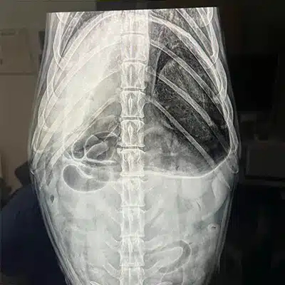 Knowing our girl, we had faith Kaya could make the trip, and sure enough, she was strong-willed enough to reach the vet! Once she arrived, they quickly tried to diagnose her, but the x-rays just weren’t providing enough information. The vets believed it was either intestinal torsion or gastric torsion, which is when the stomach begins to twist, and is the end stages of bloat. We were hoping for the latter, as our vet informed us that 75% of animals who have intestinal torsion are euthanized.