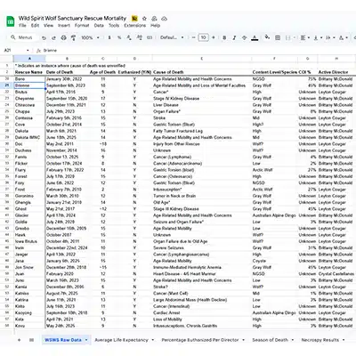 The added bonus of performing necropsies on our animals is that there is very little research on wolfdogs in the scientific community, and our organization is blessed to have staff on hand experienced in conducting research.