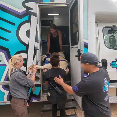Wild Spirit Wolf Sanctuary is honored to work with Dr. Thomas Gonzales, who is the owner and founder of Gonzales Veterinary Services in Albuquerque, New Mexico. His mobile veterinary vehicle has been vital to our organization, allowing him to bring his rig to the sanctuary to complete vet care on site, including x-rays, surgeries, and more!