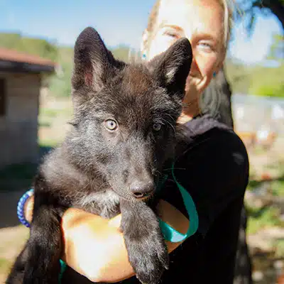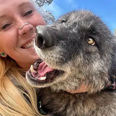 While the process of raising our sweet girl was demanding–requiring multiple daily feedings, around the clock socialization and care, boundary-setting, leash-training, and so much more–it was also beyond rewarding. You see, today Artemis is 2-years-old, living outside full-time and sharing her life with a mid-content wolfdog named Balto who she absolutely adores. However, as with many higher-content wolfdogs, she has grown to be more shy and reserved around those humans that did not participate in raising her (with some exceptions). But for those that were involved in those formative months, we are still seen as members of her “pack,” and loved UNCONDITIONALLY all these years later. ![]()