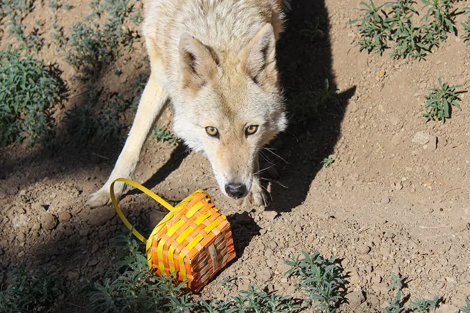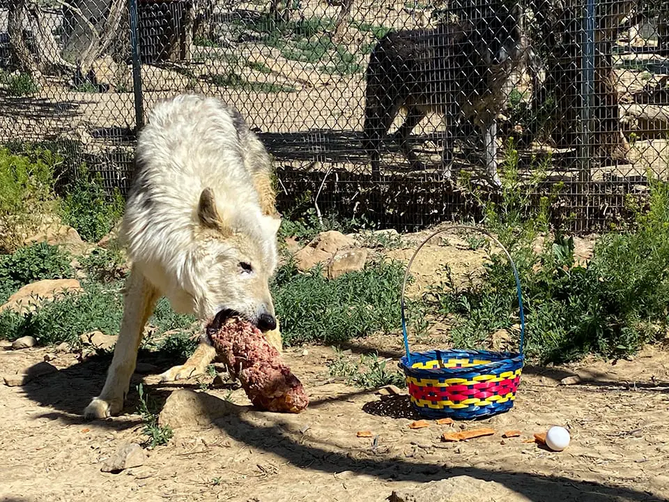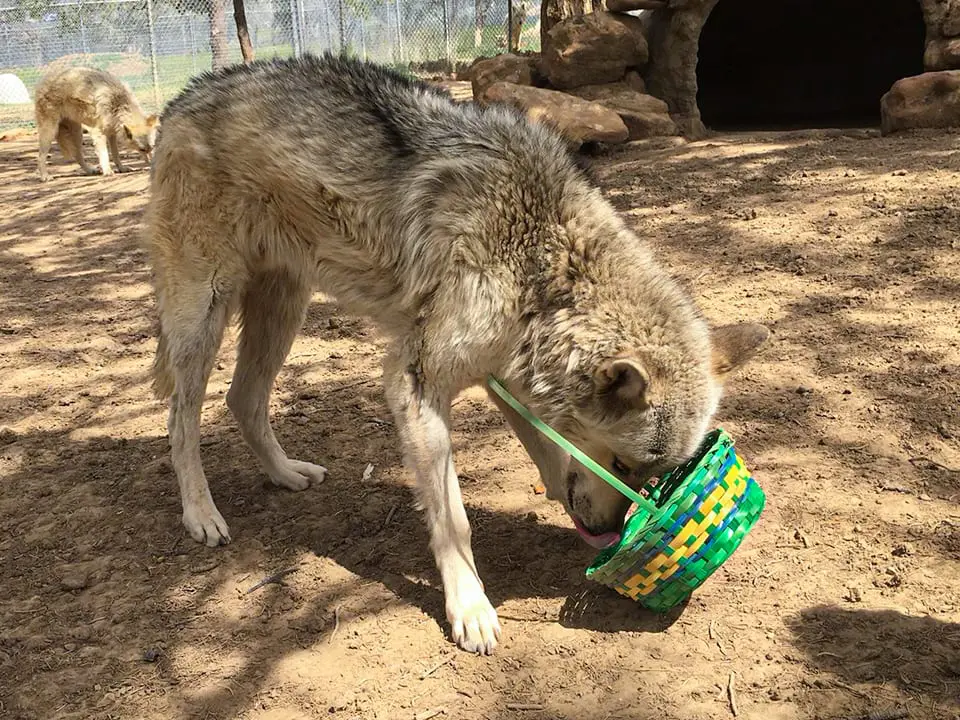 Thank you so much to all of our dear Howling Supporters who helped the Wild Spirit Wolf Sanctuary Team provide our rescues with the Spring Basket Enrichment! While the Facebook Live Feed from last Thursday, May 7th, only showcased some of our rescues receiving their baskets, all 56 of the animals received the same throughout the week.
