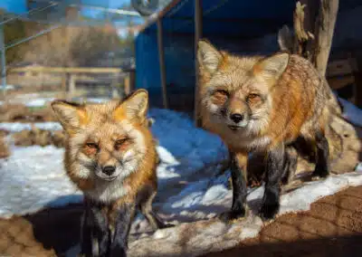 Soon after their birth, however, Virginia passed a law prohibiting the ownership of foxes as pets, meaning Rumi, River, and the rest of the foxes needed to find near-immediate placement! With nowhere to go, she and her siblings were placed into foster care in Ohio while caring folks looked for places for them to live. We were thrilled to give River and her brother a new place to call home, and have loved watching the two of them grow together over the years!