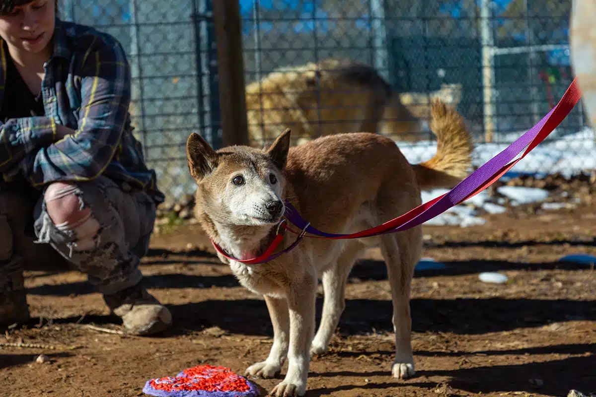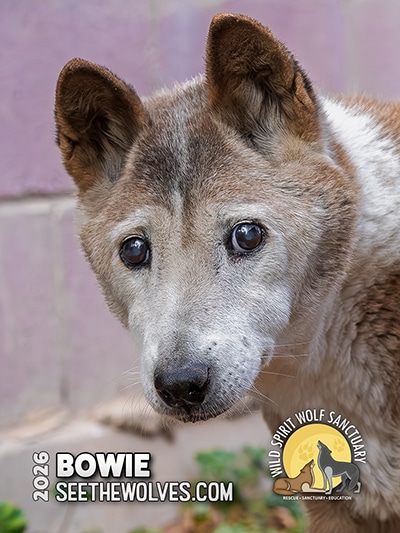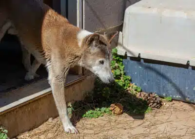Bowie is certainly one of the most adorable Singers in our care, and certainly one of the most social! He is incredibly trusting of people and is usually one of the first animals we introduce new staff and interns to, as he always makes a memorable impression! Bowie shares his life at Wild Spirit with female New Guinea singing dog Reba, who was also a part of this massive rescue effort.