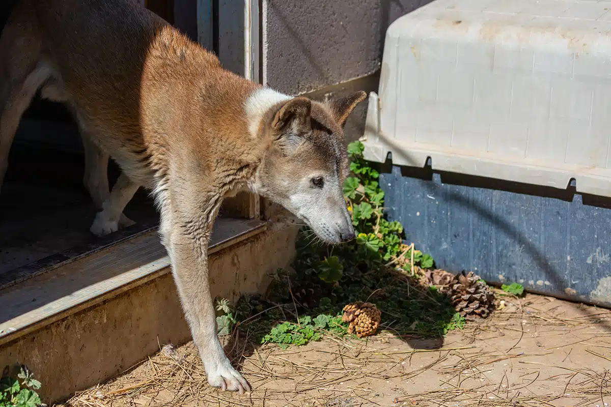 Bowie’s story begins with a Pennsylvania man who bought a breeding pair of New Guinea singing dogs from a flea market. That same year, he obtained another pair from a kennel that had been shut down by his state. By October of 2010, he had over 80 Singers. They endured unsanitary, makeshift living conditions, including a half dozen adults housed in travel crates stacked on top of one another. The press secretary for the Pennsylvania Department of Agriculture said that, aside from not holding the proper licenses and not vaccinating his Singers for rabies, she thought the animals seemed loved and fed. However, it was clear that their owner was overwhelmed, and she considered him to be a hoarder. Pennsylvania animal officials decided it would be best for all but 10 of his Singers to be placed in other homes or sanctuaries, and their owner cooperated fully. We are thankful for James McIntyre from New Guinea Singing Dogs Conservation Society who went to assist, and Tom Wendt from New Guinea Singing Dog International who went to the rescue and found refuge for 62 of the 88 animals. We send huge thanks to Samantha Burleson from Tom’s organization who called us several months later, after five of the Singers who had gone to Arizona needed to be relocated again.