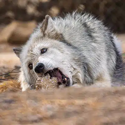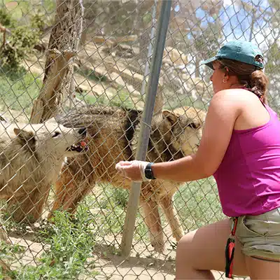 Aleu remained a hands-off animal her entire stay at Wild Spirit, but she was quite comfortable in the presence of humans. She would lay down while caretakers were in the enclosure, even sharing space with them, and would receive handfed meals through the fence every day. Affection was just never something she craved from humans, usually getting her fill from Denahi alone.