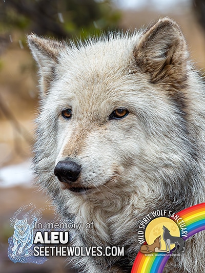 Aleu lived with her mate Denahi before she arrived at Wild Spirit and remained with him until her last breath. The two were a wonderful companion pair who truly cared for one another, with only food coming between them from time-to-time. She also had her daughter, Yue, living at the sanctuary.