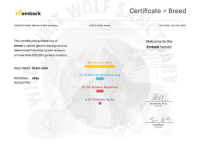 At the time, we were beyond our maximum capacity after taking in seven wolfdogs from Kansas following the death of their owner just a few months prior. However, we wanted to help as much as possible in securing the Pennsylvania Six a safe place to call home, so we agreed to assist by reaching out to the Wolfdog Rescue Network to see if any other facilities might be able to place them. To sweeten the deal, we even offered to make the trip to Pennsylvania to assist with and pay for each animal’s vetting, and then transport them anywhere in the lower 48, all to make sure these sweet babies (all of which were 3 years old or younger at the time) lived to see another day.