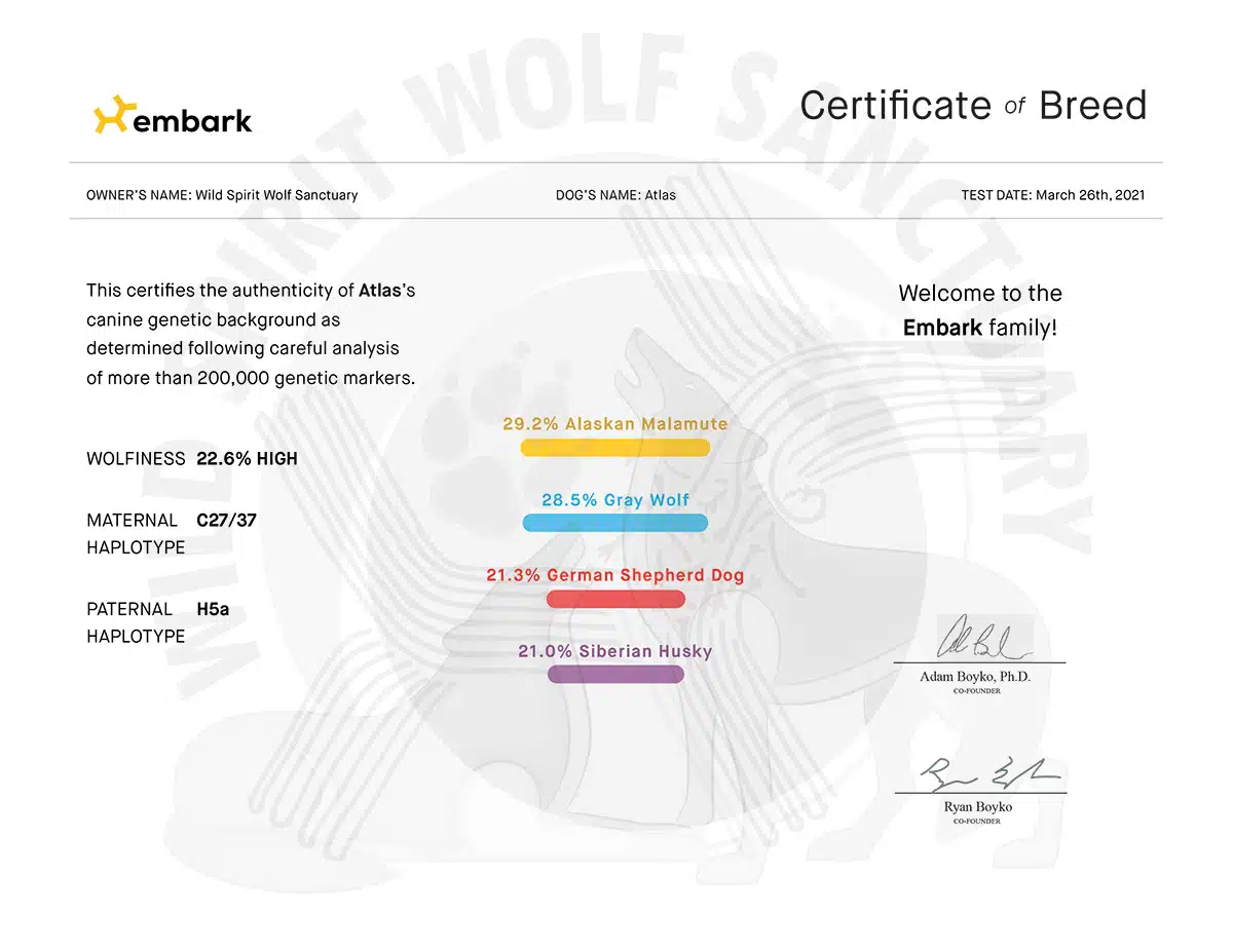 In October of 2022, Wild Spirit was contacted by a fellow wolfdog sanctuary looking for placement for two of their rescues: a low-content male named Atlas, and a mid-content female named Celeste.