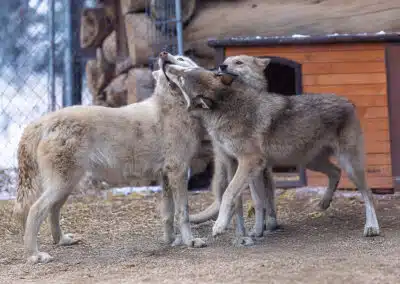 On the first trip, Wild Spirit selected eight animals to spend the rest of their lives in our care. Among these were seven wolfdogs (Kirara, Niohuru, Jethro, Korah, Princess Poppy, Eevee, and Aurora) and one coydog (Captain).
