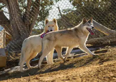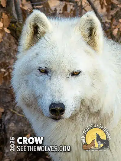 Since his arrival at Wild Spirit, Crow has remained quite shy in comparison to the rest of the boys, who have now passed over the years. That being said, he has had a few favorite people over the years, who he will approach for hand sniffs and some affection. After arriving at the sanctuary, Crow was paired up with low-content wolfdog, Honey, who is just as shy as he is, if not more! Fortunately, the two are well matched and get along splendidly.