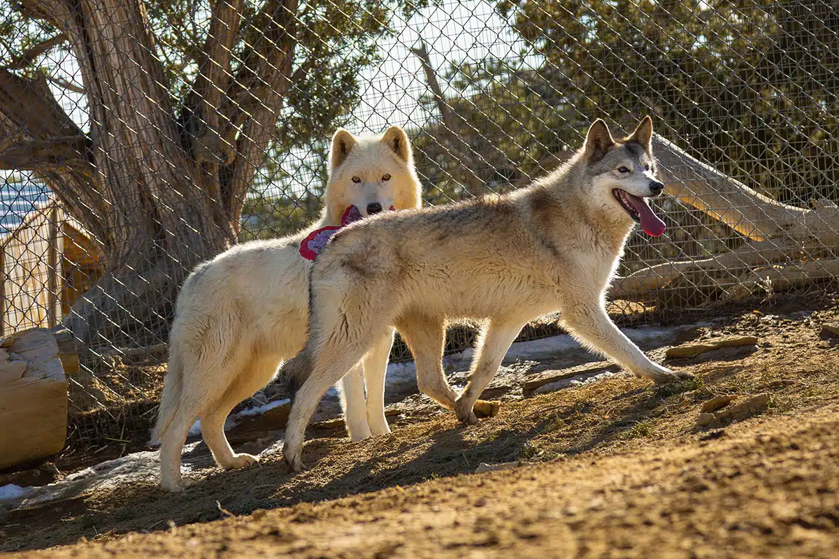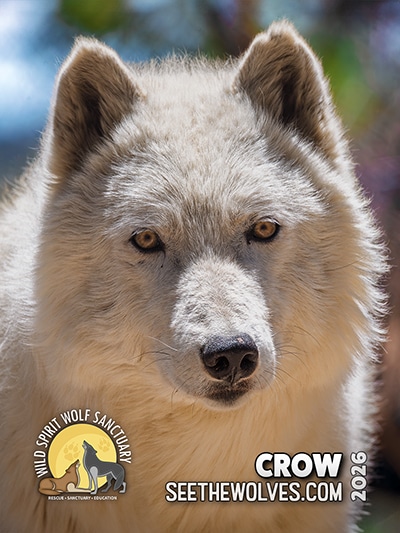 Since his arrival at Wild Spirit, Crow has remained quite shy in comparison to the rest of the boys, who have now passed over the years. That being said, he has had a few favorite people over the years, who he will approach for hand sniffs and some affection. After arriving at the sanctuary, Crow was paired up with low-content wolfdog, Honey, who is just as shy as he is, if not more! Fortunately, the two are well matched and get along splendidly.