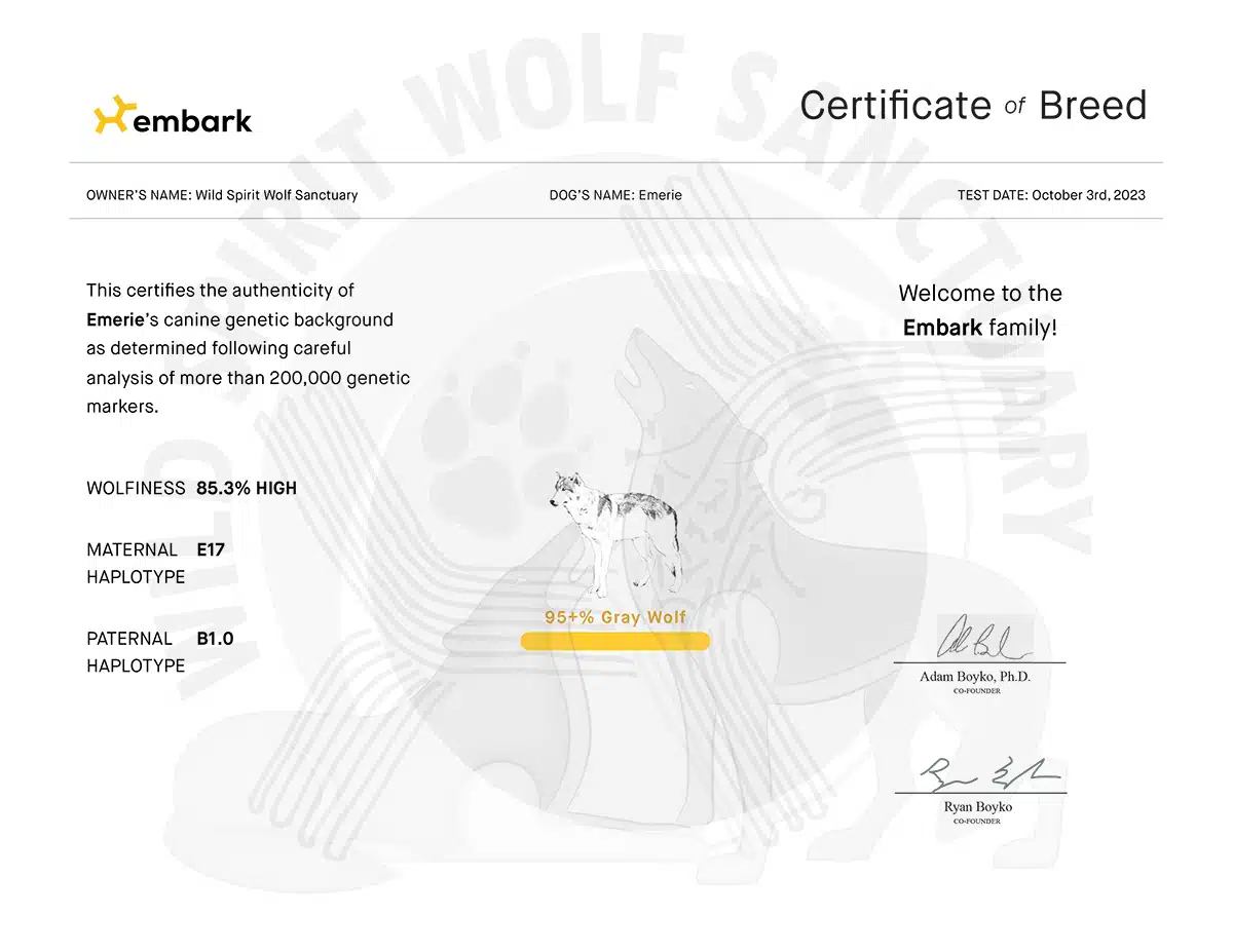 At the time, we were beyond our maximum capacity after taking in seven wolfdogs from Kansas following the death of their owner just a few months prior. However, we wanted to help as much as possible in securing the Pennsylvania Six a safe place to call home, so we agreed to assist by reaching out to the Wolfdog Rescue Network to see if any other facilities might be able to place them. To sweeten the deal, we even offered to make the trip to Pennsylvania to assist with and pay for each animal’s vetting, and then transport them anywhere in the lower 48, all to make sure these sweet babies (all of which were 3 years old or younger at the time) lived to see another day.