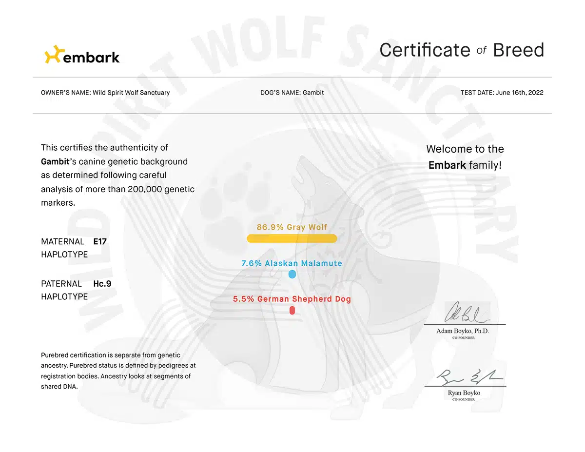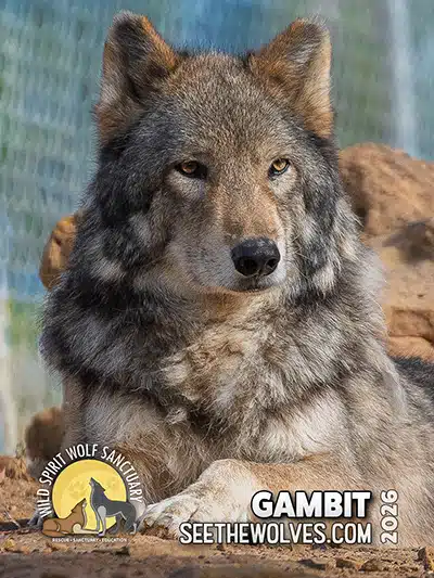 In addition, Gambit is the younger brother of Sox, a female wolfdog that came to Wild Spirit in October of 2020 as a result of extreme stress and anxiety that failed to resolve despite her owner’s efforts.