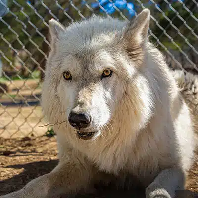 Irwin had a penchant for drama. This expressive, vocal and sporadic fellow was loved by Caretakers and guests alike, despite being one of the very few rescues in the history of Wild Spirit that we did not enter the enclosure with. It was not always that way . . . When Irwin first arrived, he excitedly welcomed his favorite people into the enclosure, beckoning for belly rubs and affection of any kind. However, often times as an animal habituates to their new home, they becoming comfortable enough to express their true selves and set needed boundaries. In Irwin’s case, he decided that he wanted to keep his space private for just himself, and his companion, Naia. Even so, he still loved to receive affection through the fence, and could often be found resting right at the fenceline for our guests to bask in his glorious presence and wall-eyed stare.
