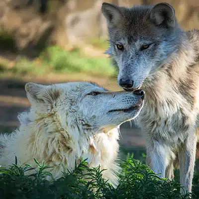 Irwin was strategically placed in an enclosure right next to Naia’s, allowing the team to watch their interactions through a shared fence line before fully introducing them a couple months later. After just a few short play-dates, Naia and Irwin were moved to a large enclosure right on the tour path, where they lived together happily.
