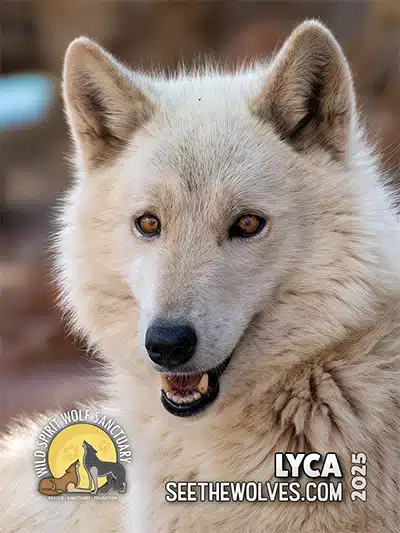 Like most of our rescues, Lyca has a heartbreaking and traumatic past. The story of her rescue began when a wolfdog escaped from horrible conditions and was running loose in a California neighborhood, struggling to survive. Everyone thought the poor canine was a pure wolf at first, and she soon caught the attention of two celebrities living in the neighborhood. Grammy-nominated singer/songwriter/producer Meredith Brooks commented, “I was inducted into the world of breeders, hoarders, exploitation of illegal exotic animals, neglect, and abuse of the innocent when I looked out my window and saw a wolf on my little street nestled in the canyon.” Ms. Brooks’ celebrity neighbor and fellow animal champion also stepped in to help. Reality star/model and founder of Angels for Animal Rescue, Joanna Krupa, worked hard to gain the wolfdog’s trust and soon she was comfortable approaching Ms. Krupa as she sat on the ground. Her efforts brought more attention to the situation and also demonstrated to people that the “wolf” was not dangerous. Thankfully, she was eventually captured and has started a new life at another sanctuary.