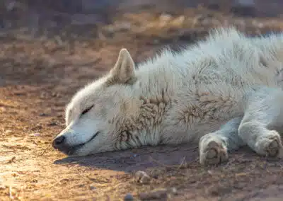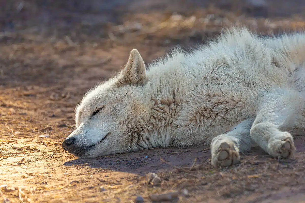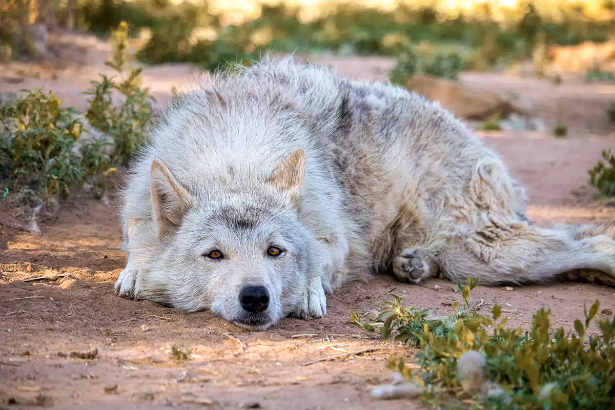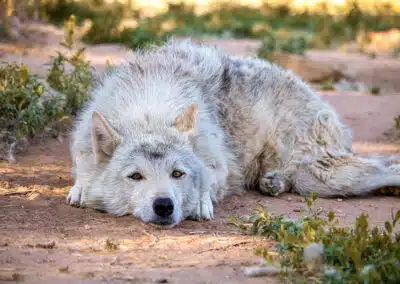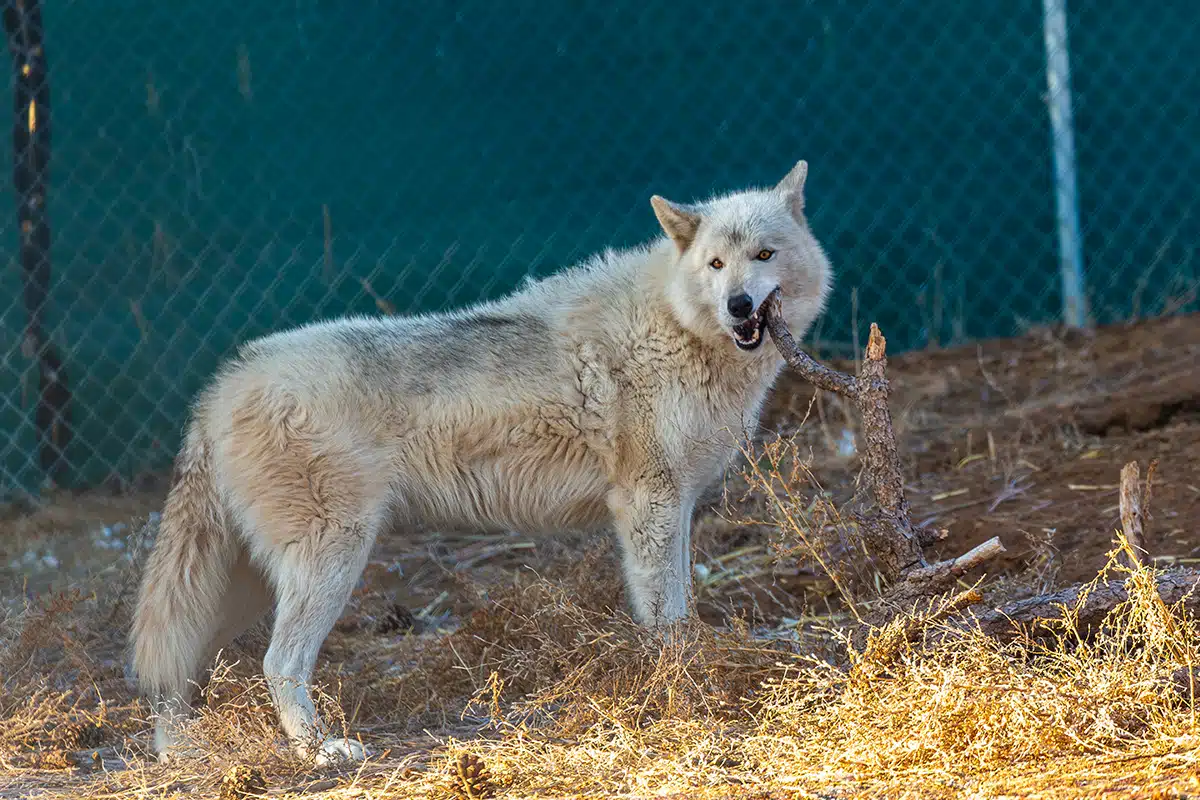 Like most of our rescues, Lyca has a heartbreaking and traumatic past. The story of her rescue began when a wolfdog escaped from horrible conditions and was running loose in a California neighborhood, struggling to survive. Everyone thought the poor canine was a pure wolf at first, and she soon caught the attention of two celebrities living in the neighborhood. Grammy-nominated singer/songwriter/producer Meredith Brooks commented, “I was inducted into the world of breeders, hoarders, exploitation of illegal exotic animals, neglect, and abuse of the innocent when I looked out my window and saw a wolf on my little street nestled in the canyon.” Ms. Brooks’ celebrity neighbor and fellow animal champion also stepped in to help. Reality star/model and founder of Angels for Animal Rescue, Joanna Krupa, worked hard to gain the wolfdog’s trust and soon she was comfortable approaching Ms. Krupa as she sat on the ground. Her efforts brought more attention to the situation and also demonstrated to people that the “wolf” was not dangerous. Thankfully, she was eventually captured and has started a new life at another sanctuary.