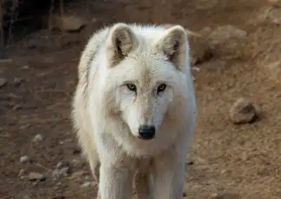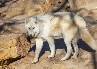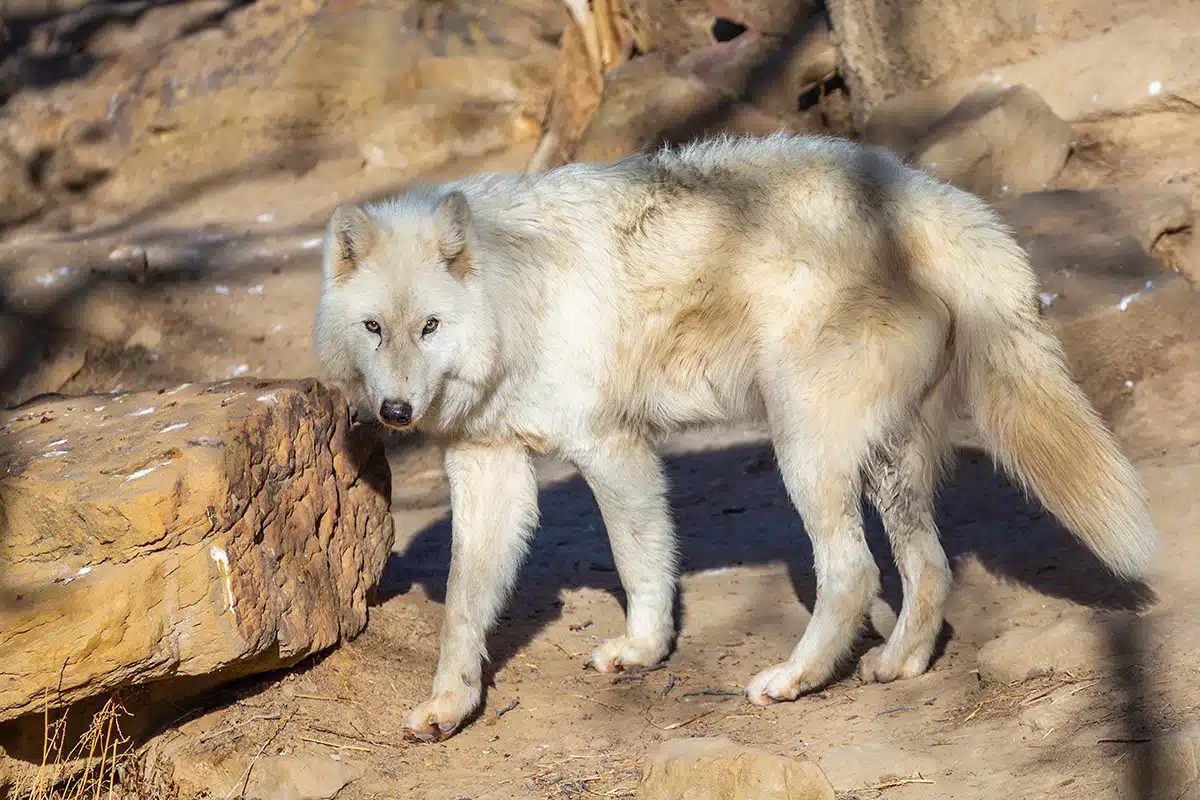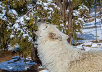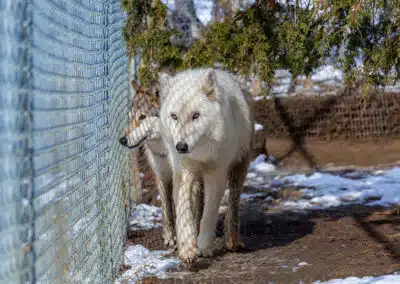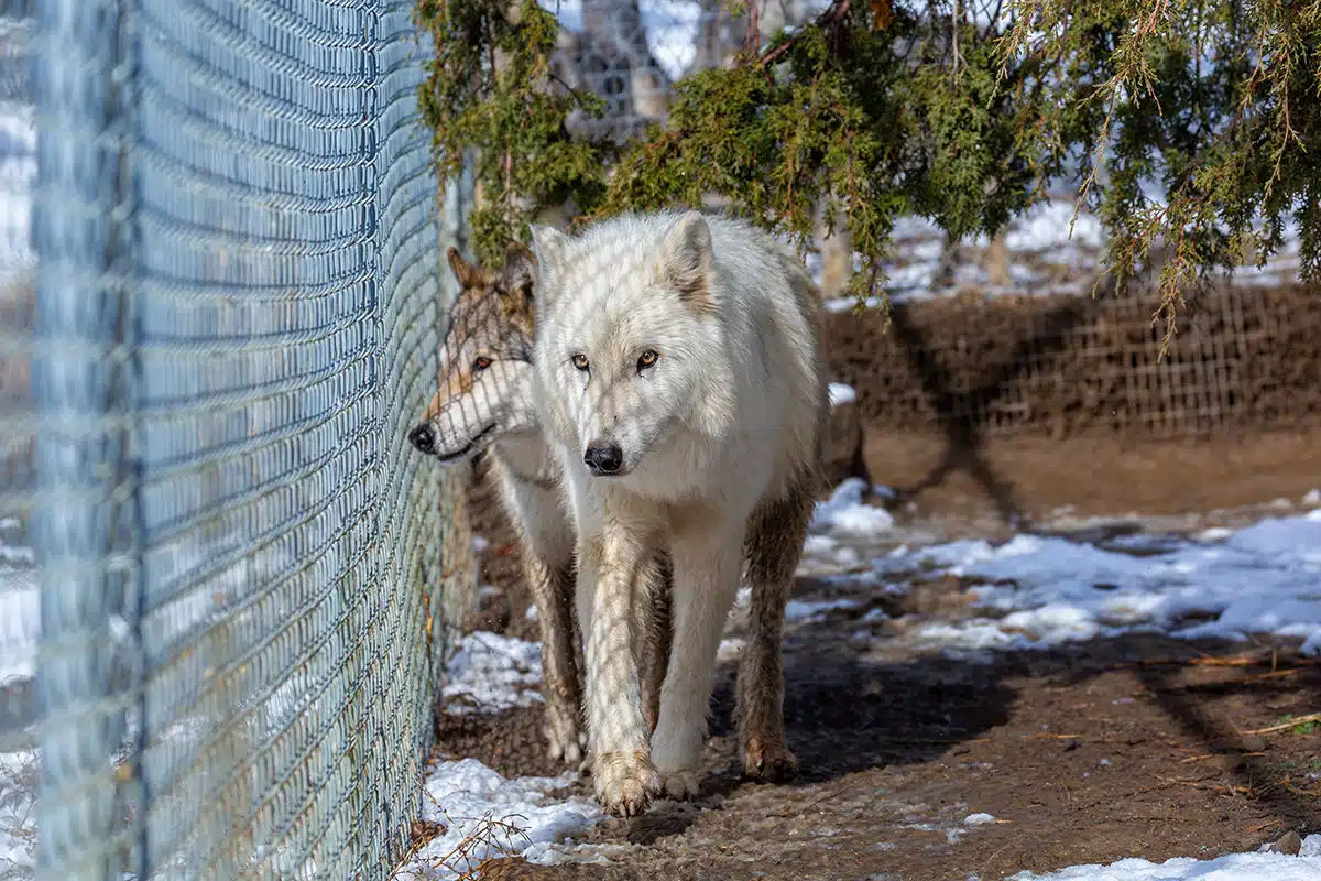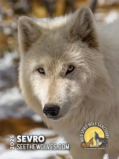 On the return trip, Sevro remained calm and subdued (though still obviously nervous about his new kidnappers), which is quite common for new rescues. Thankfully, he spent the nearly 30-hour drive back home primarily resting, and upon arriving at the sanctuary, he was more than ready to explore his brand new enclosure! Best of all, he was placed next-door to mid-content wolfdog Motaki, who we have since successfully paired him with! Since being in his new home, Sevro has remained shy around humans, but we hope he will begin to warm up to us in time. And if not, we feel confident that he will have a sweet and fun-loving companion in Motaki, who will help him feel right at home!