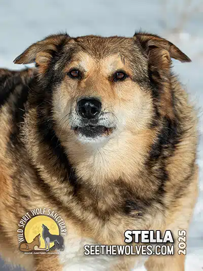 Stella was transferred to us from a shelter after a hoarding case was settled in 2018. Due to the wolf content in her the shelter was not comfortable adopting her out, forcing Stella and her offspring, Summit, Aspen and Frisco, to come to Indigo Mountain.