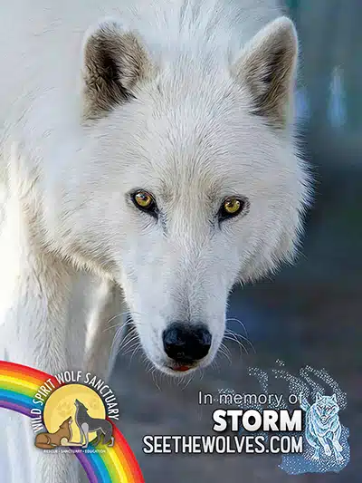 Storm is the reason why I love wolves so much today. He made such an impact on me when I was a little kid and I fell in love with his handsome coat. I’ve loved wolves and specifically arctic wolves. I even have an arctic wolf tattoo now and I was even able to pet one at a different sactuary. I wish that people could fall in love with these gorgous aniamals and see just how amazing they are. They aren’t like the stories you hear growing up. They are a family and a strong network of intellegent creatures. They’re just amazing and Storm is always in my memories when I look back onto my love of wolves.
