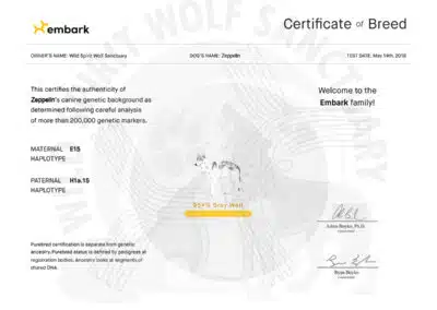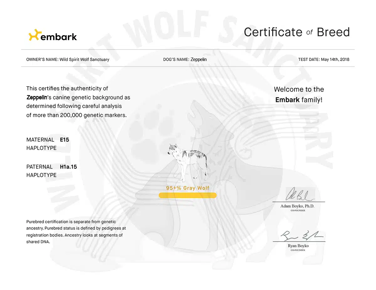 Hoping he may be experiencing seasonal behavioral changes rather than a permanent shift in personality (as is common for high-content wolfdogs, specifically during the winter breeding season), Zeppelin’s owners waited several months to see if his reactions toward his new owner might return to normal. Sadly, they never did, so Wild Spirit was contacted for potential placement.